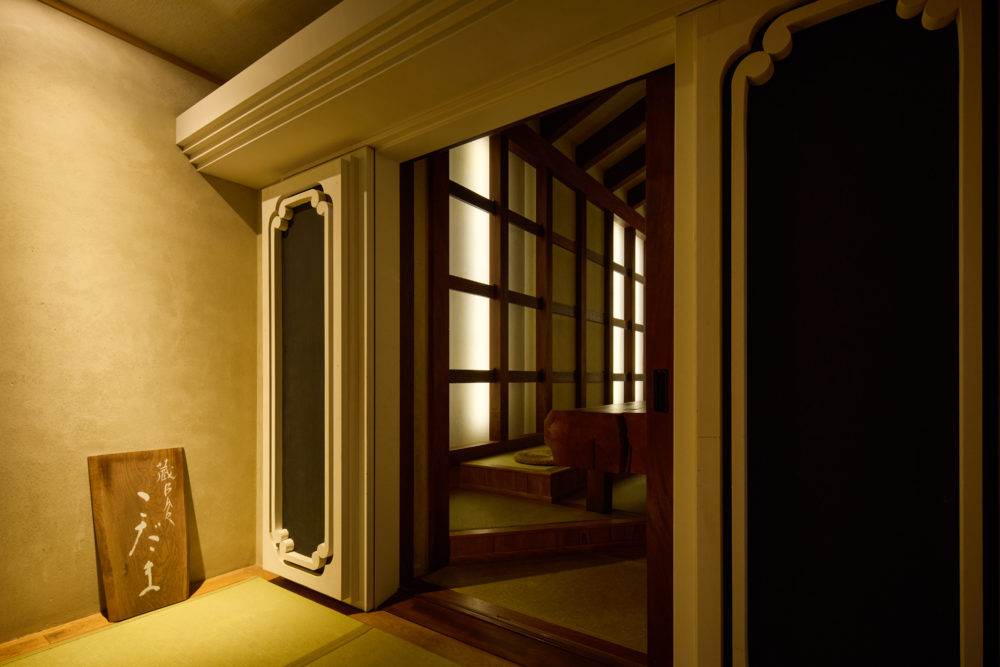 温かなエントランスがゲストを迎える。い草の香りと木材の香りについ深呼吸してしまった。