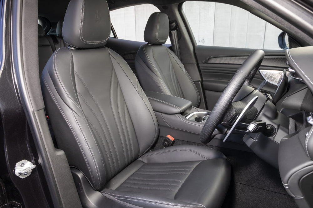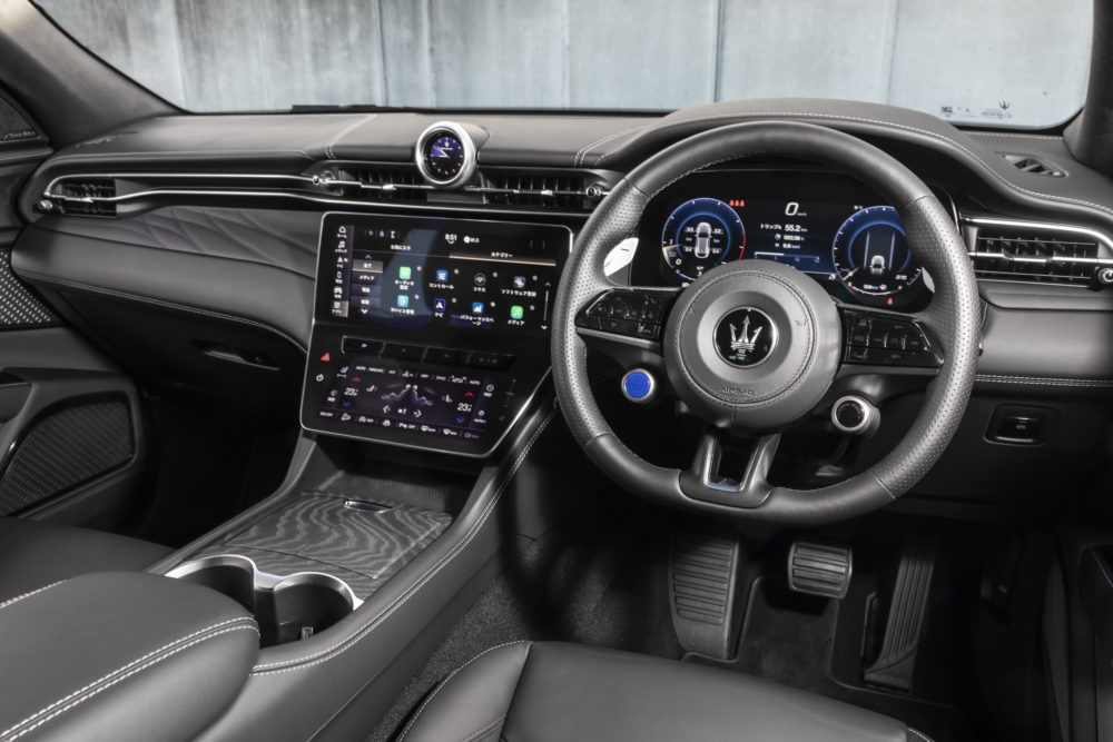 グレカーレのインテリアは、まさしくそのDNAを正しく受け継いでいる。あたたかみを感じさせる曲線美をフルレザーで覆うダッシュボードはそのハイライトで、レザーの表面のスムーズでしっとりとした質感は、自動車というよりも服飾品のよう。ダッシュボード中央に掲げられた伝統のアナログ時計がデジタルで表現されるように、最先端のデジタルテクノロジーを受け入れながらも、どこまでも人の感性を大切にするものづくりがそこには貫かれている。