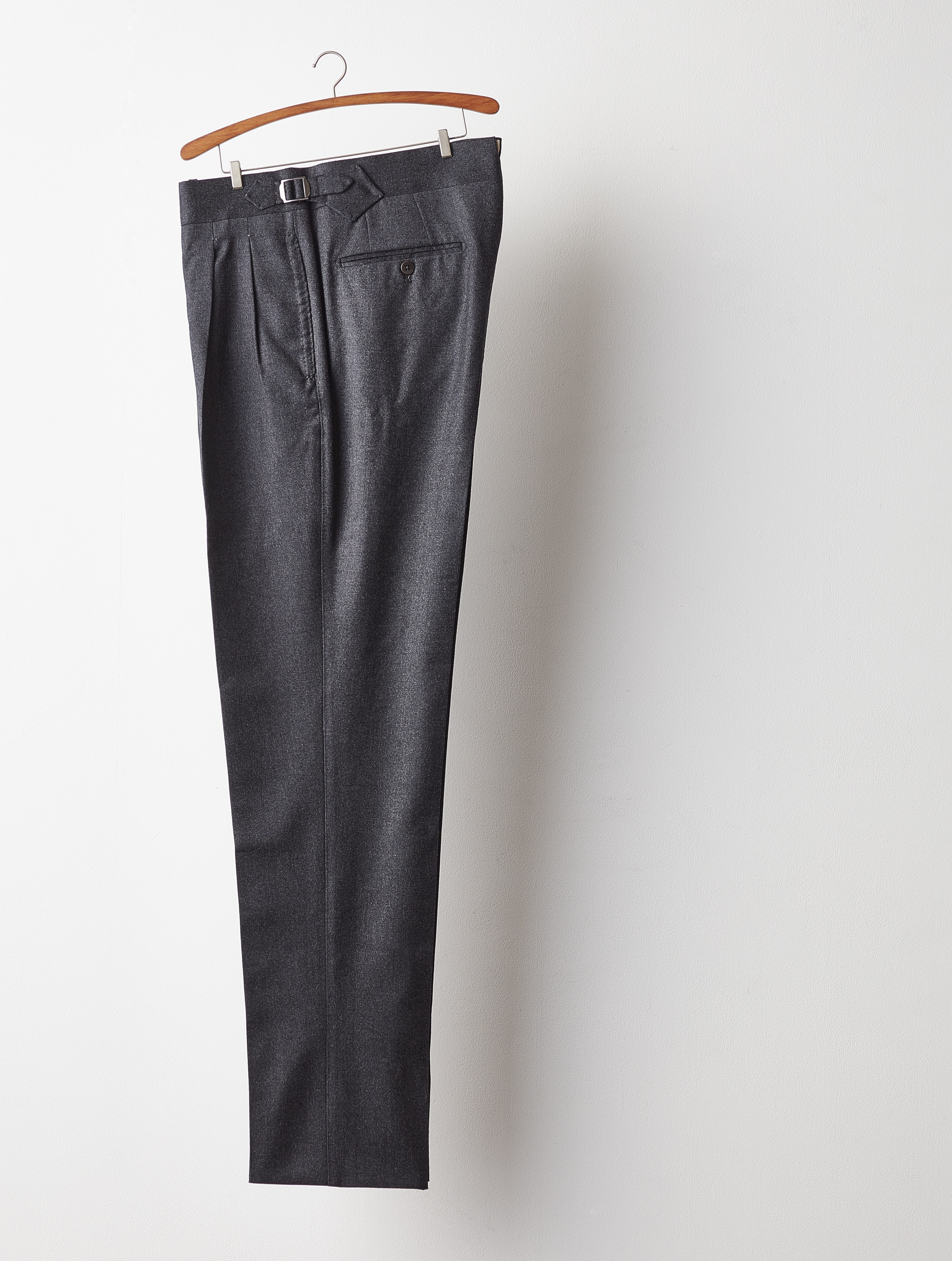 2アウトプリーツのサイドアジャスター仕様で、クラシックの王道ディテール文句なし。ぜひ覚えておいてもらいたいブランドだ。