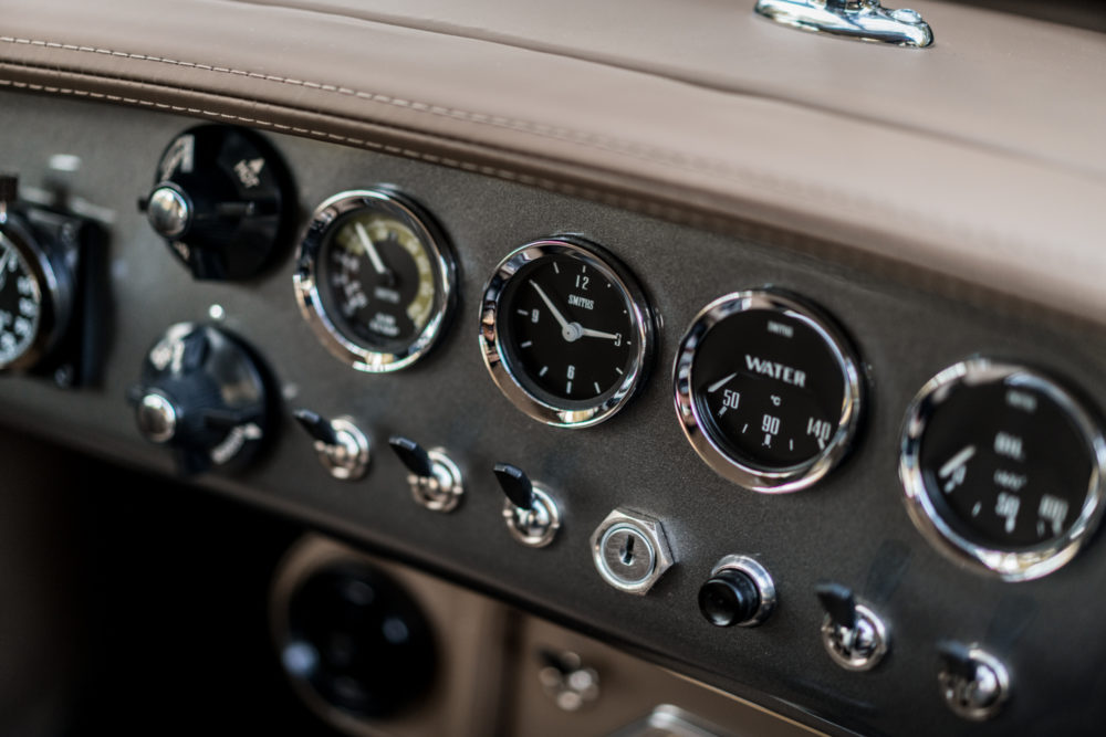 そしてキャビンに身を収めれば、思わず息をのむ。赤いレザーがほぼすべてを覆い尽くし、スリムで多眼式のアナログメーターが並ぶ美しいダッシュボードは、まるで第二次世界大戦時の戦闘機を思わせる。インテリアはフロントラインの工房で、丹念に手作業で仕立てられ、完成までに200時間以上を要するという。