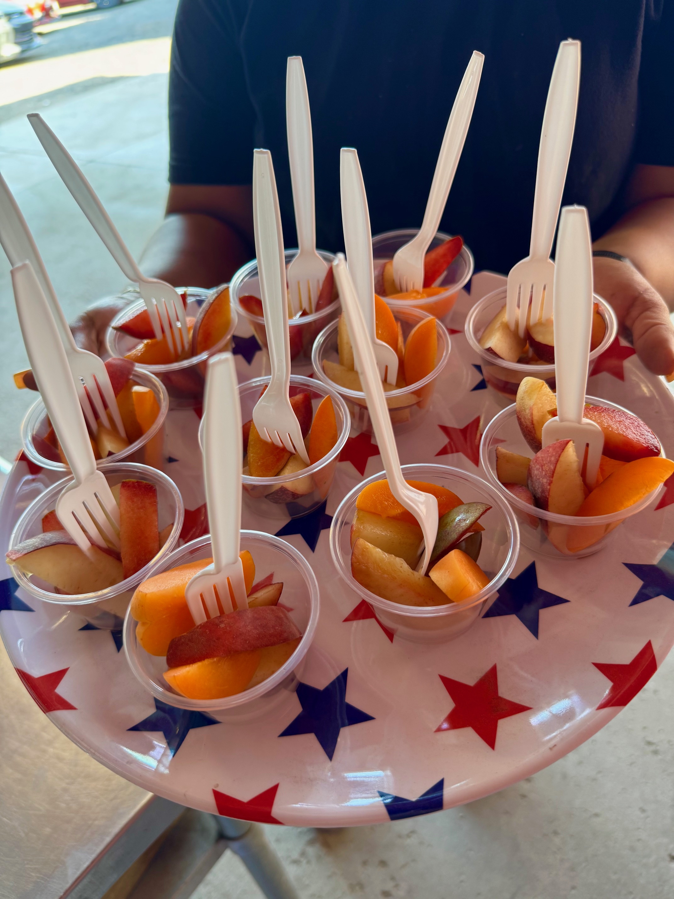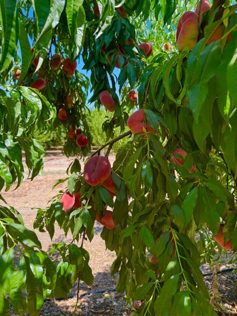 モデストでは9割がファミリービジネスだそうだが、こちらの農園も家族経営のフルーツ狩りをメインとした果樹園だ。広大な敷地内にたくさんのフルーツの木がずらり。日本だと、イチゴ農園だとかブドウ農園だとか種類を絞った専門果樹園が多いものだが、こちらはバラエティ豊かに多くの種類の木が実をつける。この日に収穫できるフルーツは、桃、あんず、ネクタリン、ブルーベリー。しかもそれぞれのフルーツに種類がたくさん。桃だけで4種類も!その上、掛け合わせハイブリッドなフルーツまであるのだ。たとえば、アプリウムはあんずとスモモの交配種。プレーリーはスモモとさくらんぼの交配種。プルオットはプラムとあんずの交配種という具合に。初めて聞く名前にワクワクしてくる。