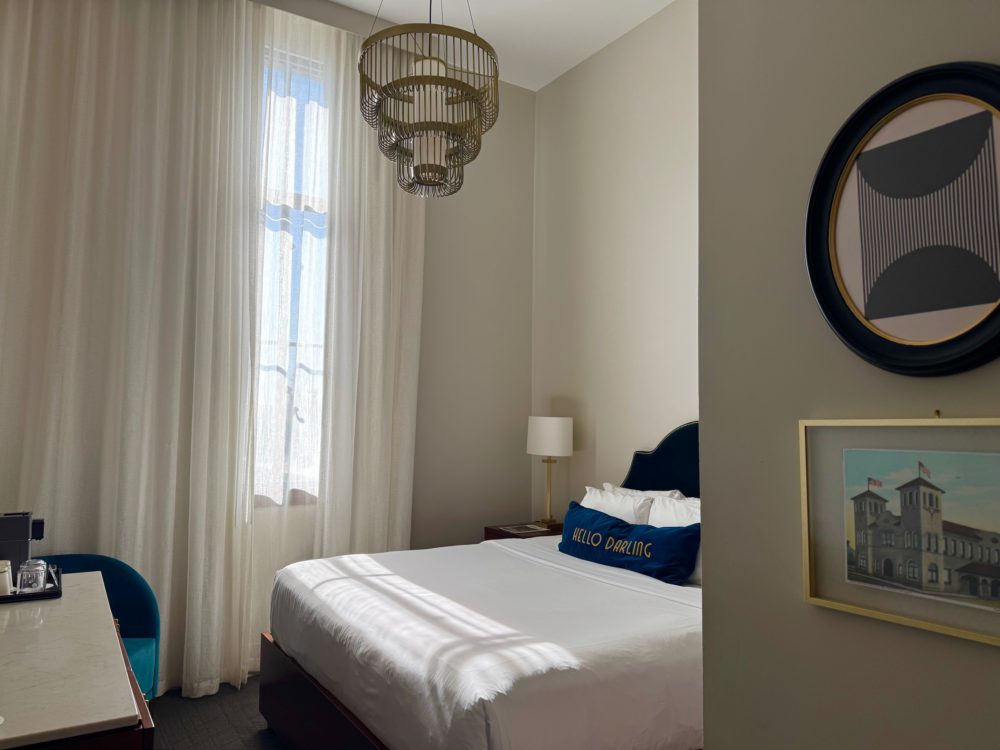 今回宿泊したのは、2020年にオープンした、街の中心地に佇む「ダーリングホテル」。郡裁判所別館だった歴史的建造物をリノベーションし、1930年代のアールデコ様式と現代的なホテルアメニティを融合させたラグジュアリーなブティックホテル。味のあるインテリアやアールデコのディテールが優雅で、館内も部屋もどこを切り取っても絵になる。