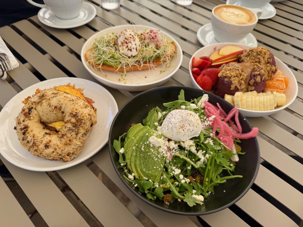 朝はダウンタウン散策。まずは木材加工工場をリノベートしたカフェ「コンポーネントコーヒー バイセリア」のテラス席で朝食。野菜と玄米のパワーボウル、そしてオーツミルクコーヒー。元気のあるみずみずしい野菜が絶品!