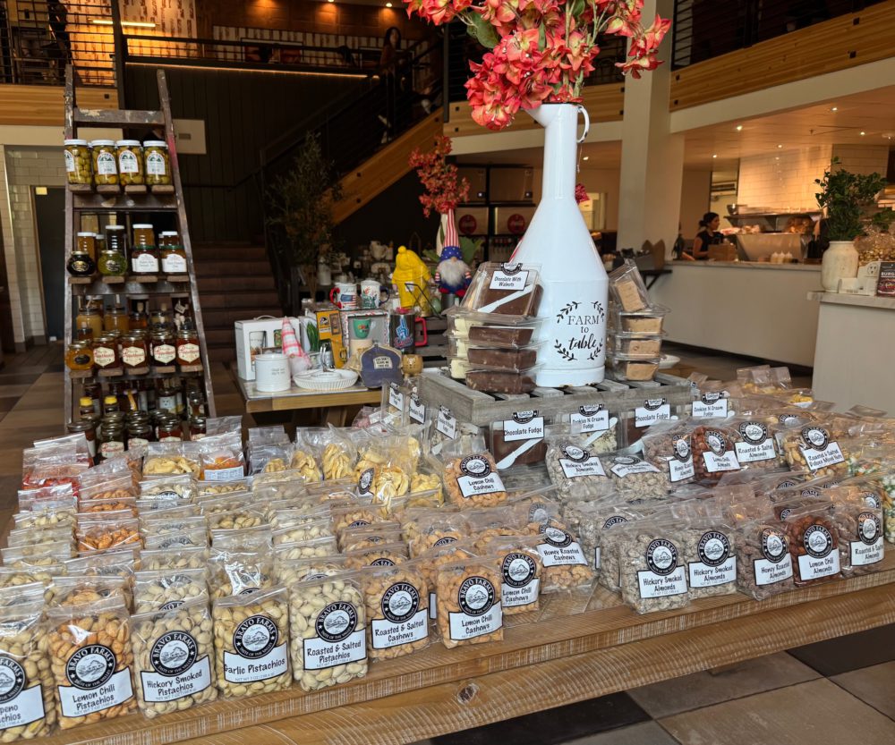 ランチをした「ブラボー ファームス バイセリア」は、1階はデリやお土産のショップ、2階がレストラン。バイセリアもモデストと同じようにフルーツやナッツ、オリーブ、乳製品、野菜が豊富で、とくにピスタチオが有名なので、1階でタイ風スパイス味のピスタチオを購入。こちらはローカル産のジャムやスイーツにも定評がある。ランチは一皿の量がびっくりするほど多いサラダやピザをみんなでシェアして。ヘルシーなのにがっつりというアメリカらしい美味しい食事が楽しめるから常に満席!