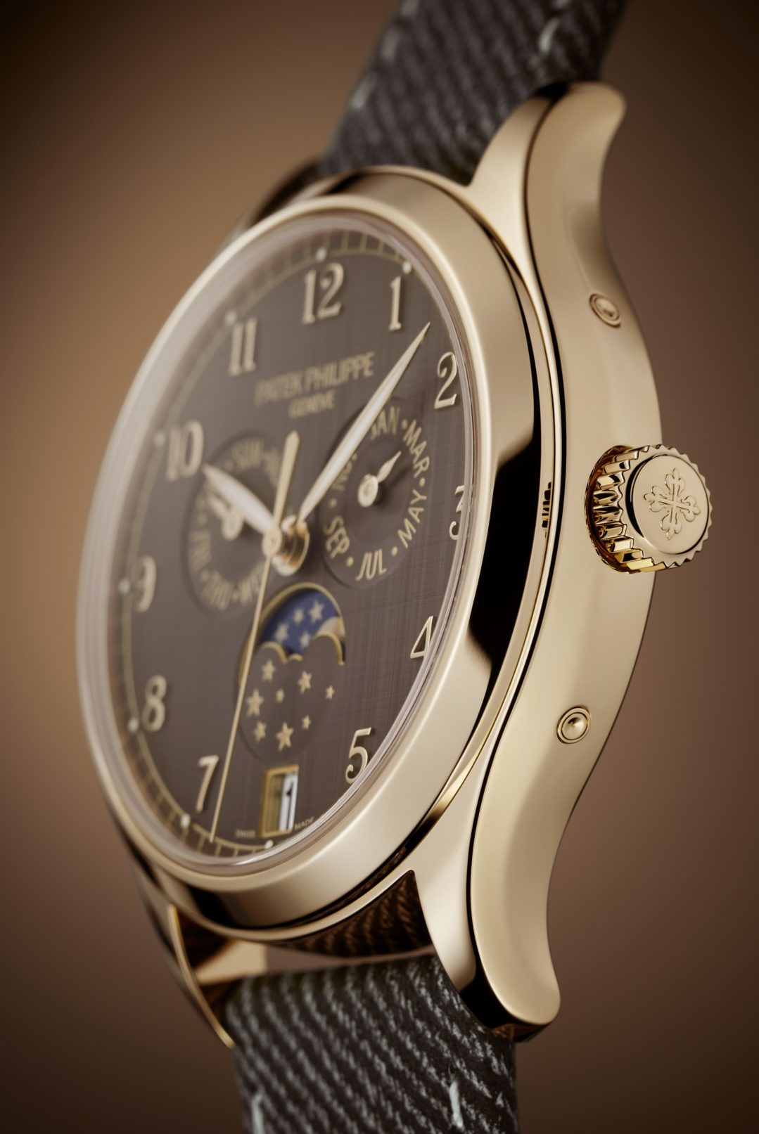 現代女性の腕に優しく寄り添うチェストナットの深み:パテック フィリップ「年次カレンダー」