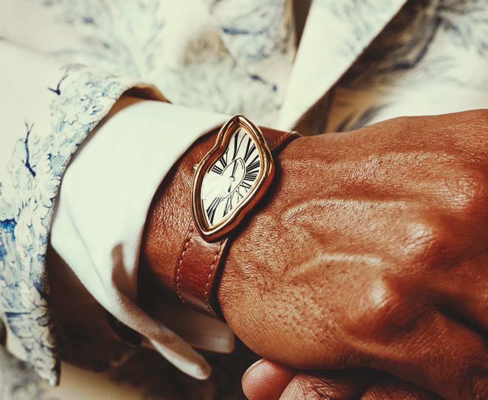 〈カルティエ クラッシュ〉は、イーブスが「どうしても頭から離れなかった」という時計だ。タイムレスでありながら創造性にあふれたこのモデルは、めったに身に着けないか、あるいは常に身に着けているかのどちらかだと言われる。彼にとっては、もちろん後者である。The Cartier Crash was a watch Ebs ‘could not stop thinking about.’ Timeless and creative, it is one of those pieces you either rarely wear or never take off. For Ebs, it is the latter.
