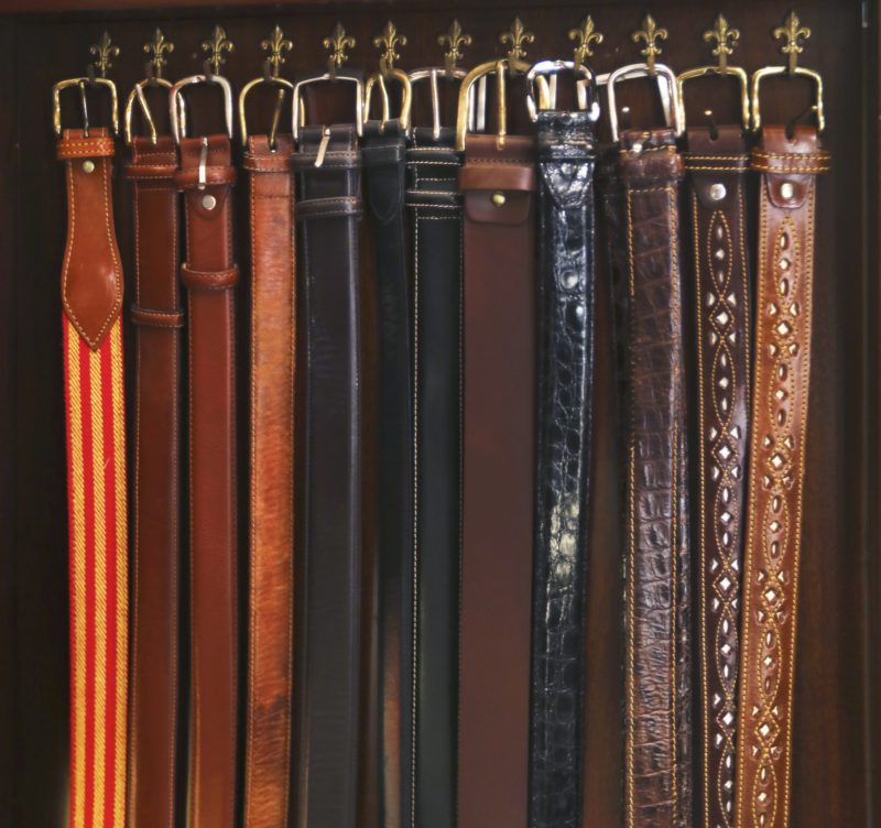 ベルトは靴をオーダーしたときに、靴と同じ革で一緒にオーダーすることが多く、ペロン&ペロンとマルコ・チェッキのモノが多い。その他、コードバンのベルトはオールデン、クロコダイルのベルトはローマのサルヴァトーレ・ニコーシアのものだ。コレクションはこれでもごく一部。
