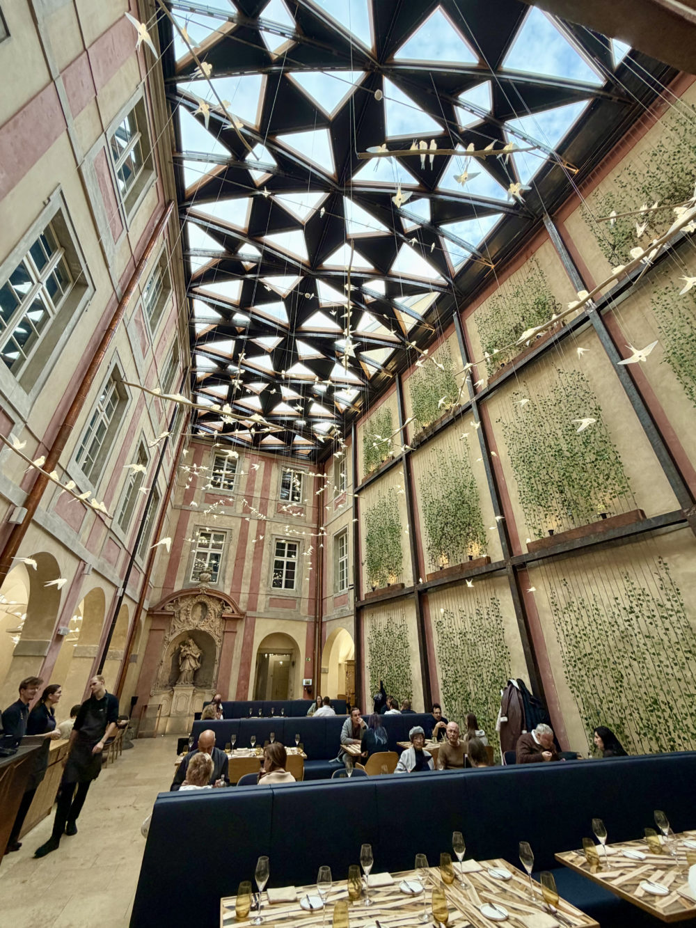 レストラン「420」。かつて邸宅として使われた歴史的な建造物の中庭に天井をつけてアレンジした内観。