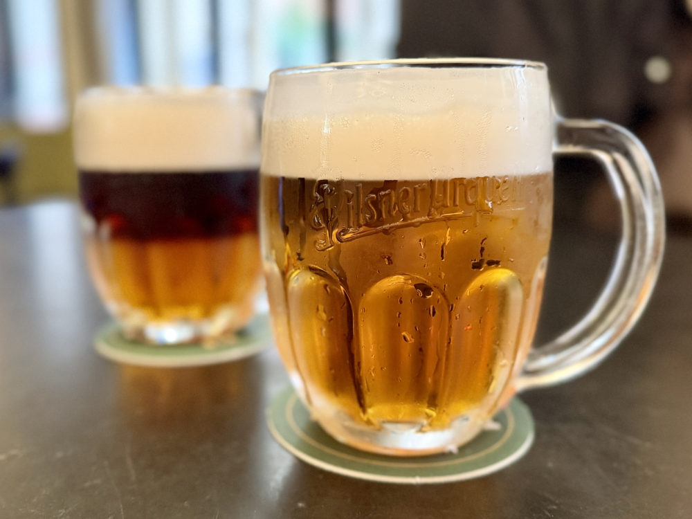 チェコの美食に欠かせないチェコビール、ピルスナー・ウルケル。写真は通常のオーダー。9割泡の「ミルコ」は、夢中になりすぎて写真を撮りそびれてしまった。