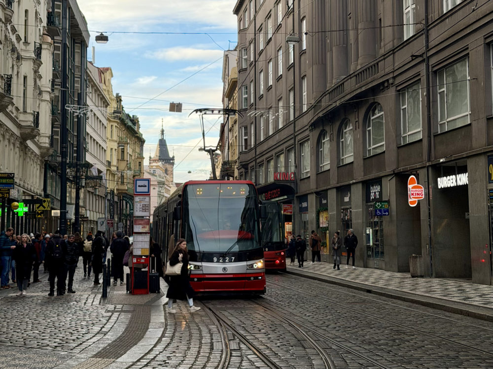 プラハ市内を走るトラム。このほか、地下鉄、バス、ケーブルカーの乗車券はすべて共通。