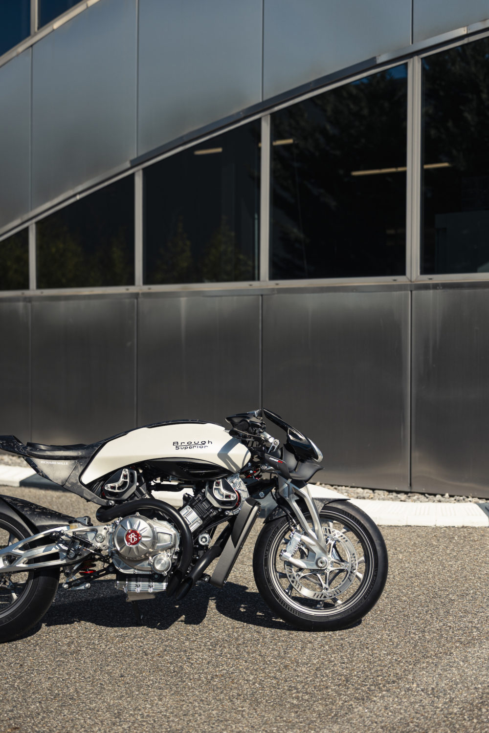 代わりに私が試乗したのは、同ブランドのSS100。1924年の名車を現代に蘇らせたモデルだ。クラシカルな外観とアグレッシブなポジションを兼ね備え、その存在感はRMB01とは異なる方向だが圧巻である。Vツインエンジンは標準で102bhpを発揮し、公道でも迫力のあるパフォーマンスを味わえる。低く響く咆哮とともに、マシンは鋭い加速をみせる。