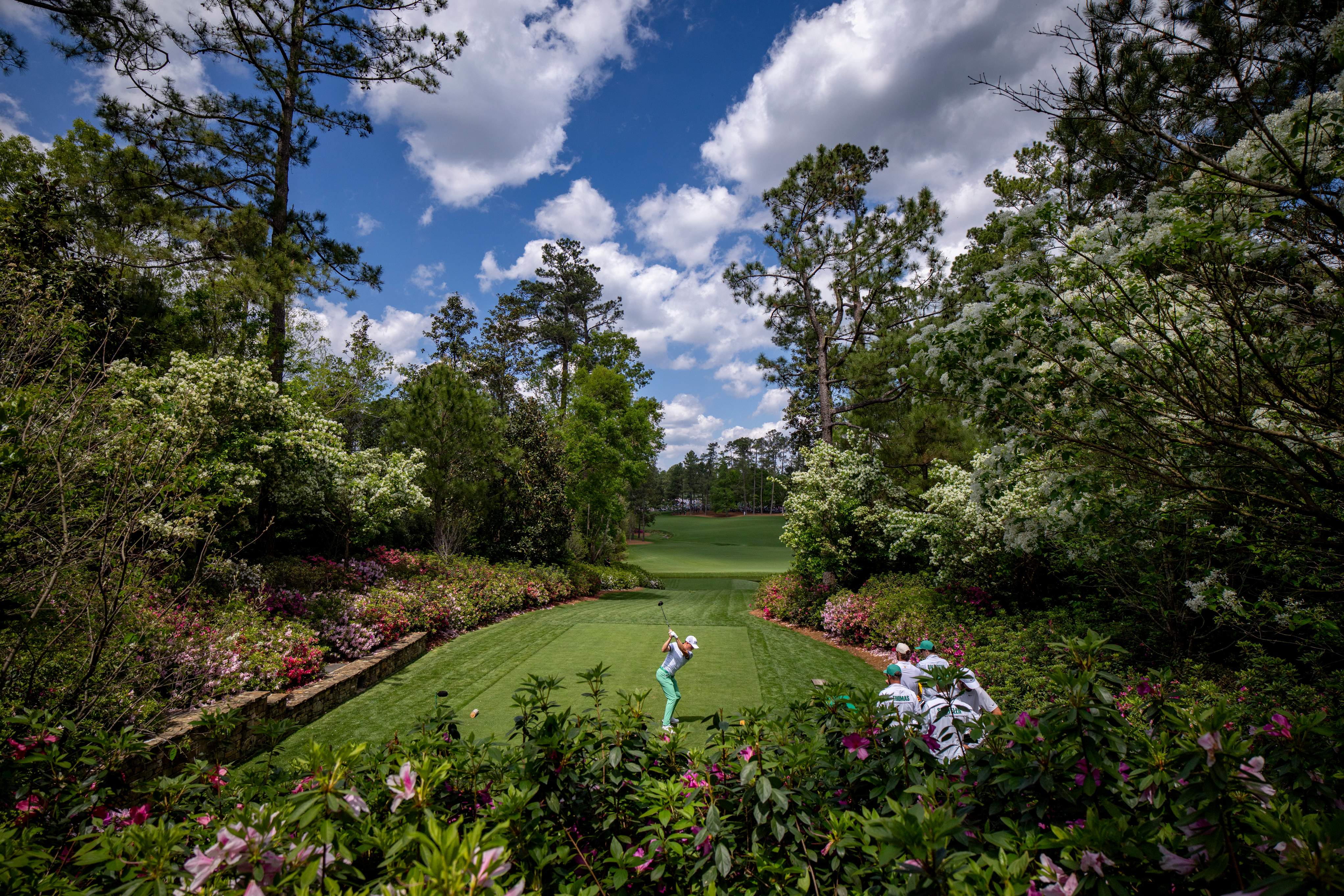 2025年、第89回マスターズ・トーナメントでショットを打つロレックス テスティモニーのジャスティン・トーマス。オーガスタ・ナショナルでは徹底して自然美が管理されている。©Rolex/Simon Bruty