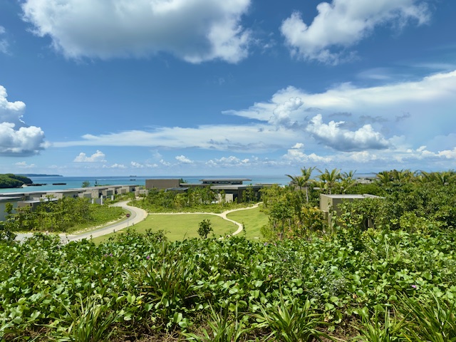 アライバルハウスからの眺め。周囲に何もない自然豊かな土地にヴィラが点在する。