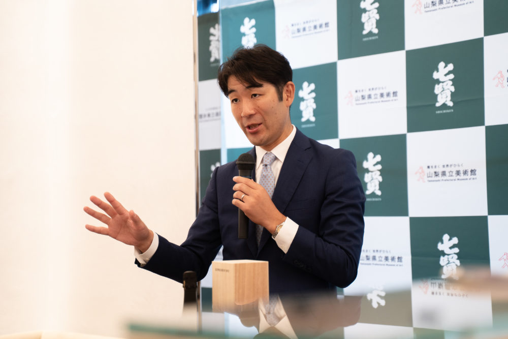 山梨銘醸 代表取締役社長 北原対馬氏は、「私たち酒造りで大切にしているのは、“自然に逆らわず、その力を信じる”という姿勢です。ミレーが描いた農民たちのように、自然の恵みと共に生きる覚悟が、一本の酒に宿ると信じています。新作は、七賢の伝統技術の粋と革新によってその年の空気、水、米、そして十余年の時間のすべてが凝縮された一本です。国内のみならず、海外においても確かな評価を得られると確信しており、自信と誇りをもって世に送り出します」と意気込みを語る。