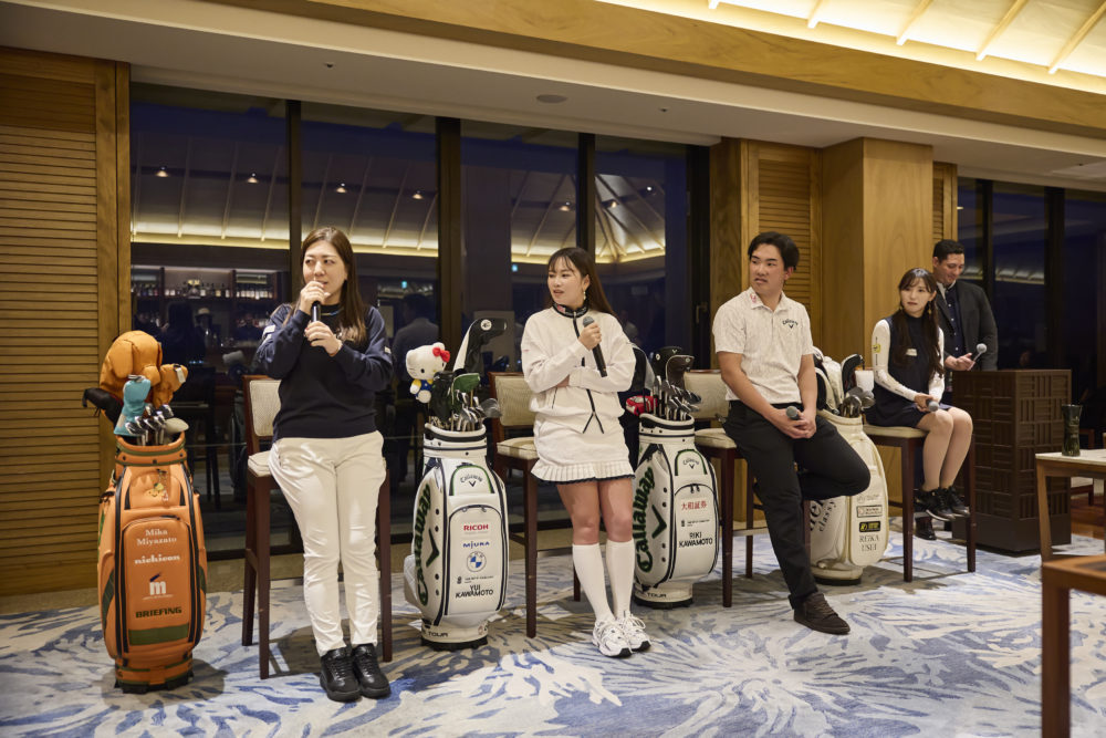 そしてついにコンペティション当日。練習グリーンには宮里美香選手と臼井麗香選手が、ドライビングレンジには河本結選手と河本力選手(姉弟)がスタンバイし、スタート前からゲストを迎え入れていた。