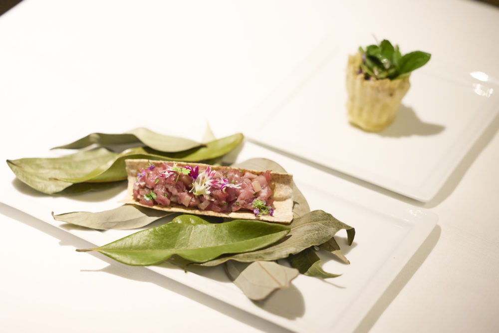 この日のために試作を重ね、時間をかけて準備したというディナーは、驚きとおいしさが交互に押し寄せる構成だった。なかでも印象的だったひと皿が、沖縄の在来種である島山羊を使ったタルタル。臭みも皆無で、体も小さく肉質も非常に柔らかい山羊のもも肉が使用されていた。お米を使って発酵させたという沖縄の小麦を使った生地は、カリカリでやわらかな肉とのコンビネーションも抜群だった。