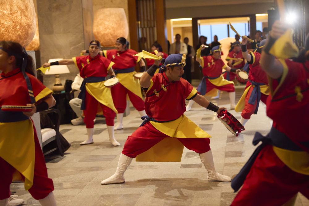 夕刻になると、ロビーでエイサーのパフォーマンスがスタート。琉球カラーの衣装に身を包んだダンサーたちが、力強い掛け声とともに華麗な舞を披露する。祈りにも通じる歌詞が空間を満たし、旅先にいる実感を静かに高めてくれた。