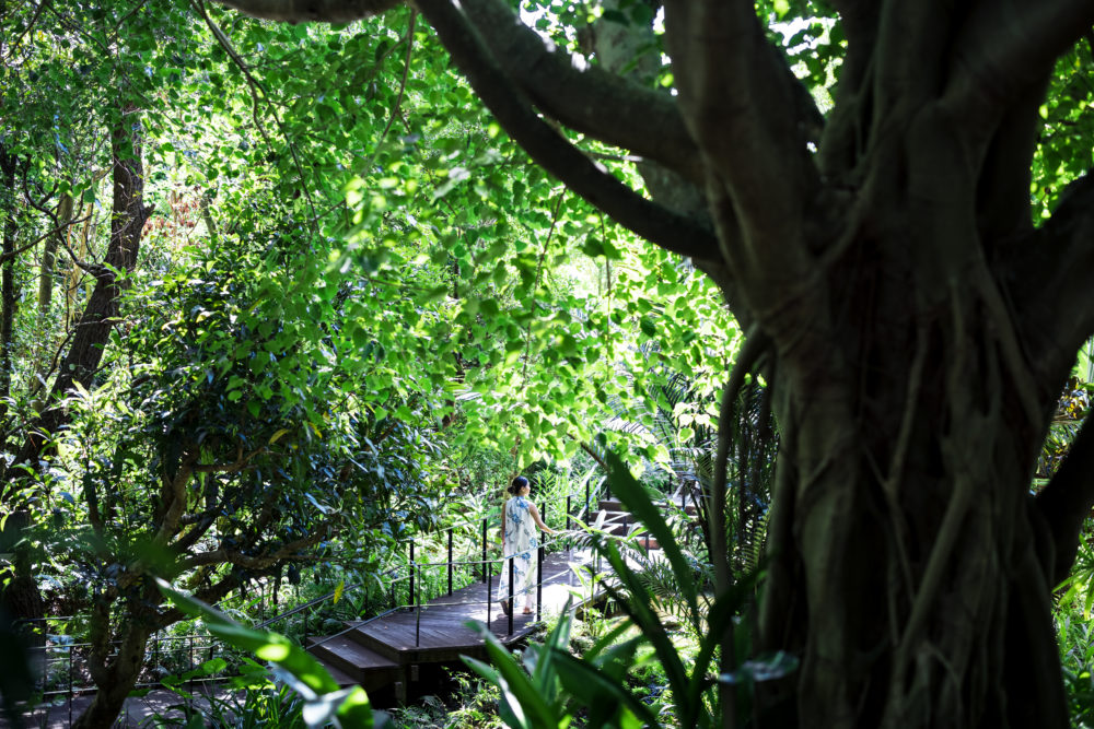 スパまでの道のりはまるで森の中のような自然豊かなルートでアクセスできる。
