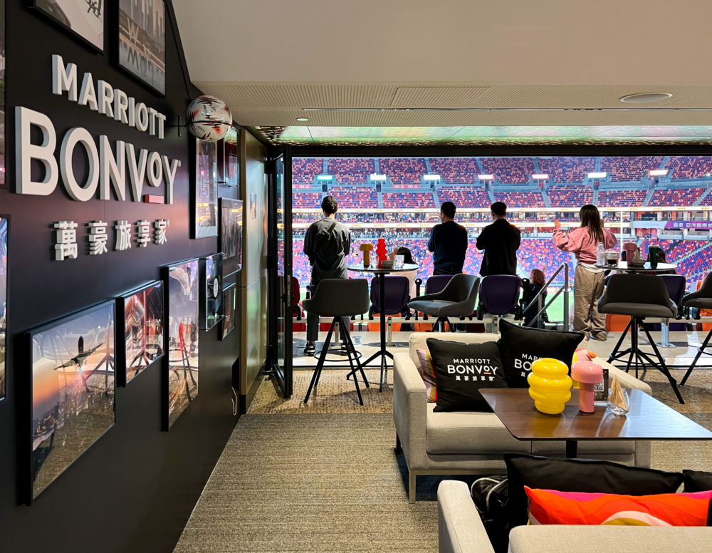 カイタック・スタジアムのホスピタリティスイート。スタジアムの熱気を正面に据えた、マリオット ボンヴォイの特別な観戦席。