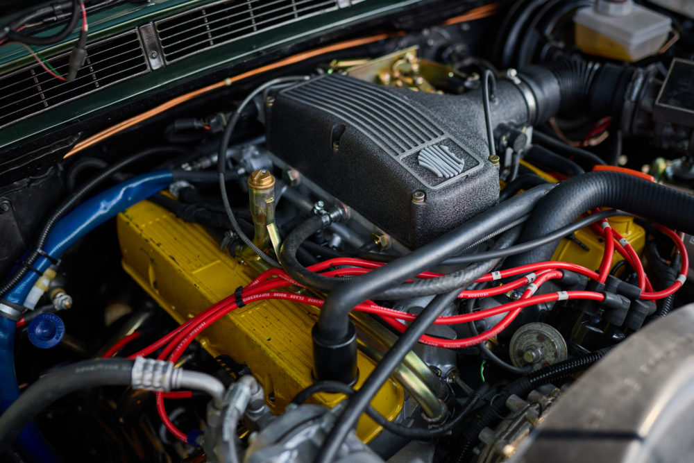 エンジンはオリジナルのV8をベースに全面リファインされ、出力は167hpから約200hpへと進化。ややリアが沈んでいたオリジナルのサスペンションはニュートラルな姿勢に修正され、16インチ径を維持したホイールもコンケーブを強めて、ワイドなタイヤが装着されている。これらによって、走りの安定感と存在感を両立させている。