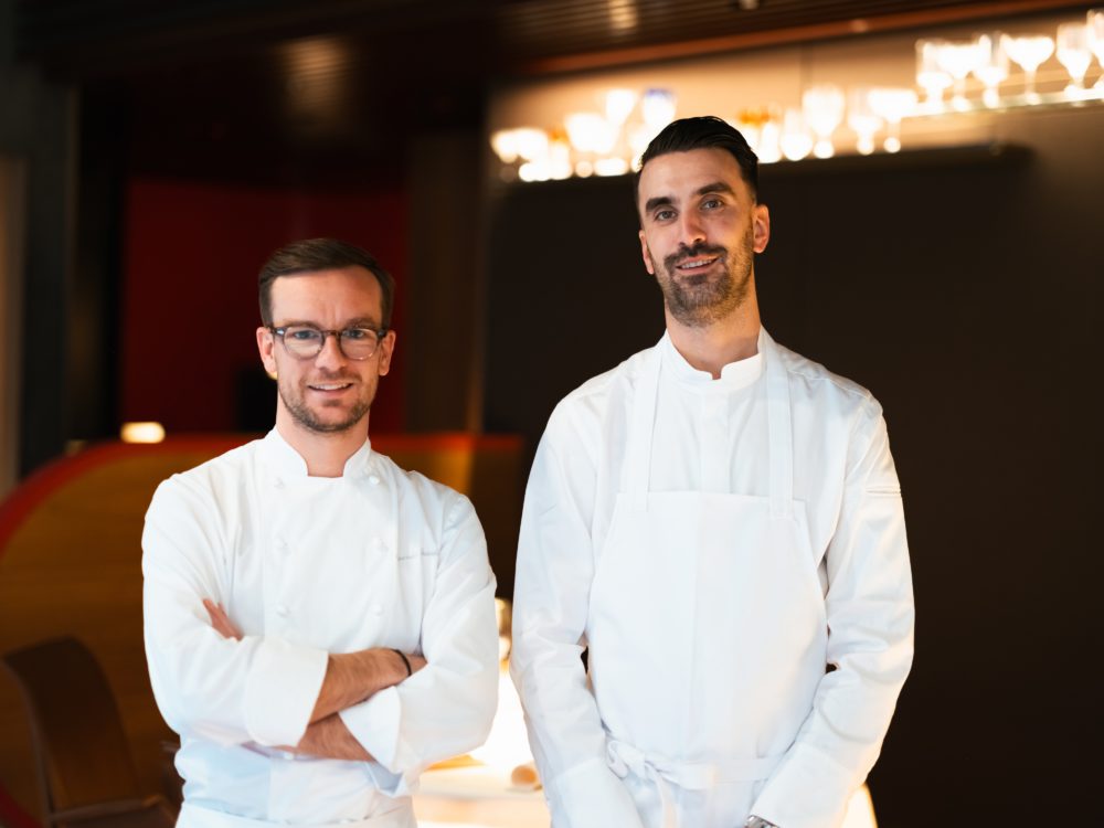 「MUNI ALAIN DUCASSE」のシェフであるアレッサンドロ・ガルディアーニ氏(左)と、フランス・パリを代表する二つ星レストラン「Le Meurice Alain Ducasse」のアモリー・ブウール氏(右)。