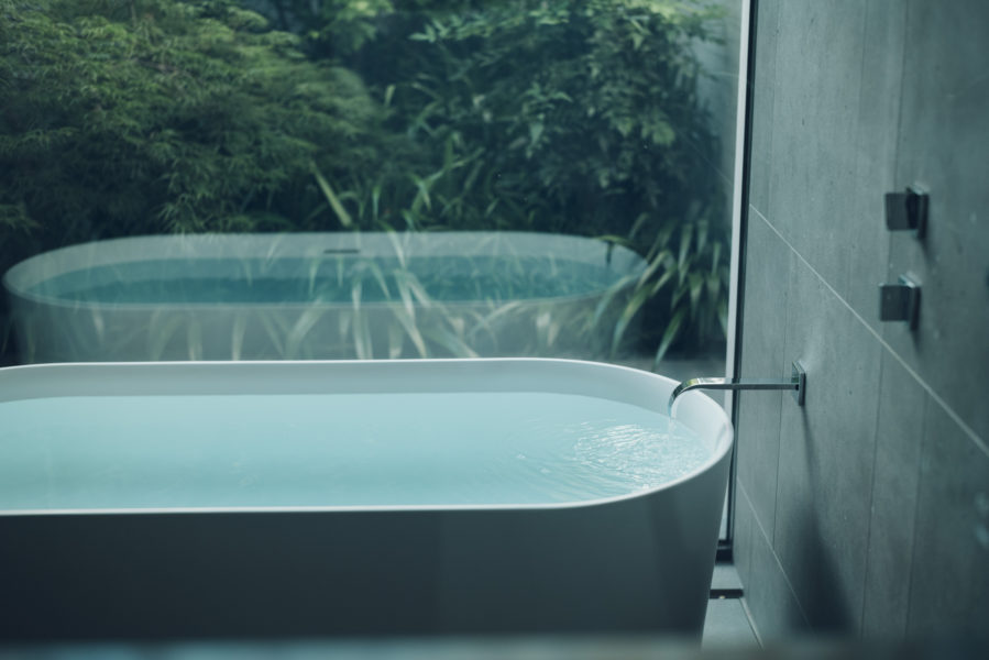 静けさを保つために、空調ではなく館内全体に水を巡らせて温度を調節しているという驚くべきこだわりも。その理由は、静かな室内にいて窓を開けた時に聞こえてくる音をより引き立てるためだとか。その華麗なまでのコントラストを、一度ぜひ宿泊して体験していただきたいです。